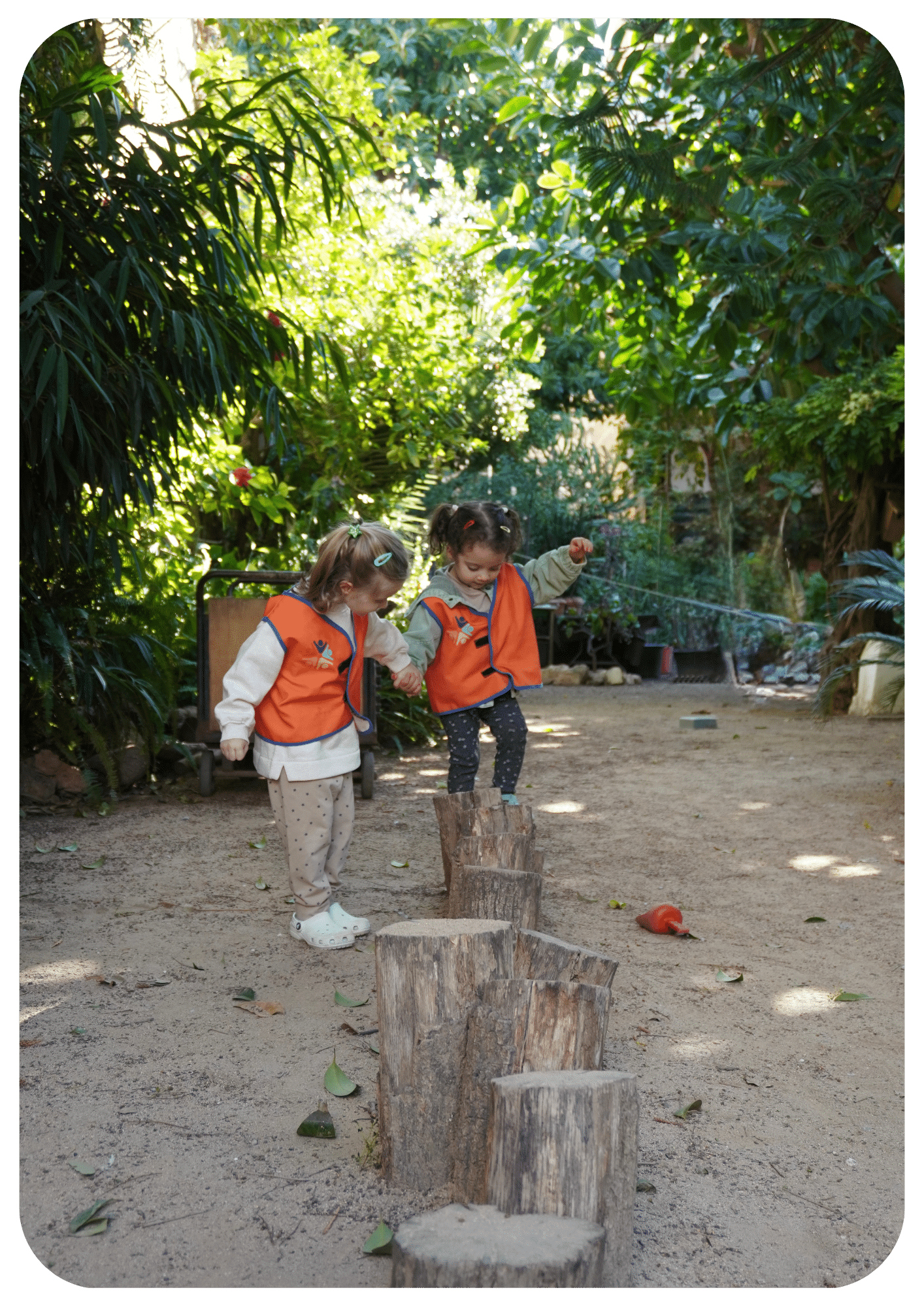 Once a month, we visit the magically hidden allotment garden Jardí del Silenci in Gràcia. Here, the children discover the importance of flowers, plants, and trees for our health. They help with the care of the garden and, in a playful way, learn about the craft of gardening. These activities not only nurture their love for nature but also teach them the importance of environmental care and sustainability.