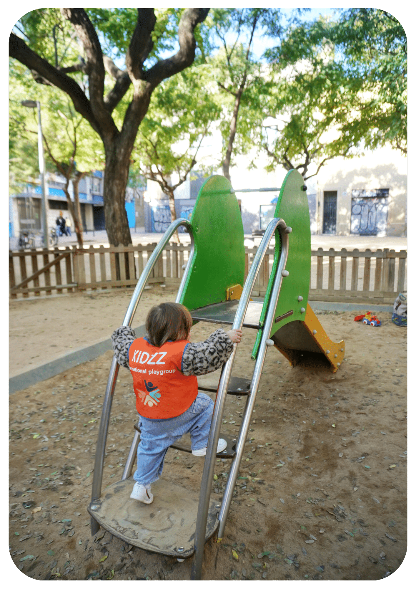 There are 10 parks within walking distance from Kidzz. From swings to slides, our little adventurers get plenty of outdoor fun and fresh air. Safety first: Our children always wear our Kidzz orange bib. There’s always a teacher nearby when the children climb, so they can enjoy and explore with confidence.